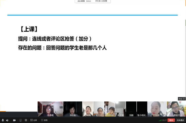 网课最担心的是学生的学习效果,因此为了提高网课的课堂效率,保证学习效果,12月13日高中理综组全体教师开展了线上教研会,邱萍萍老师、黄据芹老师、胡碧珊老师分享了自己的网课经验,老师们积极探讨,热情高涨,对更好的开展网络教学充满了信心!