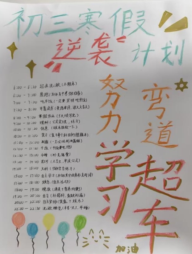 这个寒假,济南世纪英华实验学校初三学子以自律为帆、以奋斗为桨,在学习中精进,在运动中成长,在亲情中温暖。相信这份坚持与积累,终将化作前行的力量,助力同学们在中考的赛道上乘风破浪,绽放精彩!
