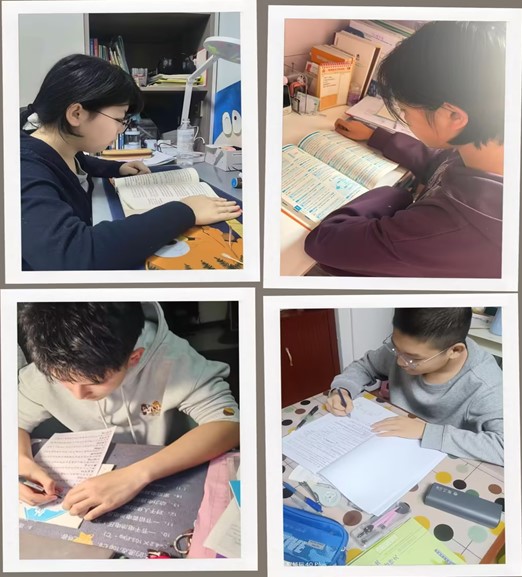面对即将到来的中考,同学们主动制定科学详细的学习计划,按时完成作业、查漏补缺、巩固知识点,针对薄弱环节强化练习。大家自觉梳理知识框架、总结方法技巧,在自主学习中提升效率,书房里专注的身影、灯光下认真的笔迹,都是英华学子为梦想拼搏的最美模样。