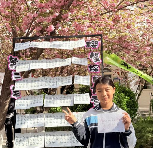 活动最后,孩子们还将自己喜爱的经典诗词,以书法形式精心呈现。一幅幅工整秀丽的书法作品,承载着孩子们对诗词的热爱与理解。他们在樱花树下合影留念,让笔墨书香与烂漫樱花相映成趣,将春日的美好与诗词的韵味,定格成校园里最动人的风景。