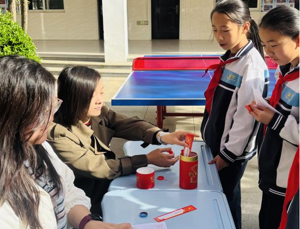 樱花树下的趣味诗词闯关区人头攒动,热闹非凡。“拼字组诗”展板前,孩子们围聚在一起,指尖翻飞间,将零散的汉字巧妙拼接,“轻舟已过万重山”“春风又绿江南岸”等千古名篇在方寸之间成型。老师们化身趣味引导者,用生动的图标唤起孩子们的诗词积累,在欢声笑语中,一句句经典诗句被精准破译,让原本严肃的诗词学习,变成了一场春日里的欢乐盛宴。